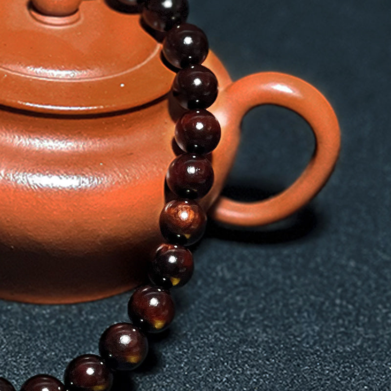 1.0 Authentic Indian Sandalwood (Pterocarpus santalinus) Handheld Bracelet/Prayer Beads with Star Pattern, High Oil Content and High Density, Gourd-shaped Pendant.