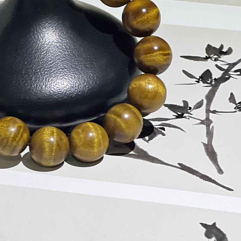 1.5 cm genuine golden nanmu wood bracelet with water ripple pattern.